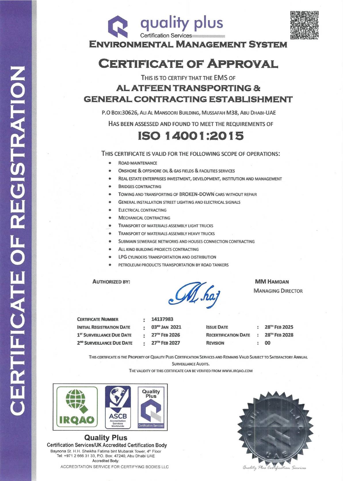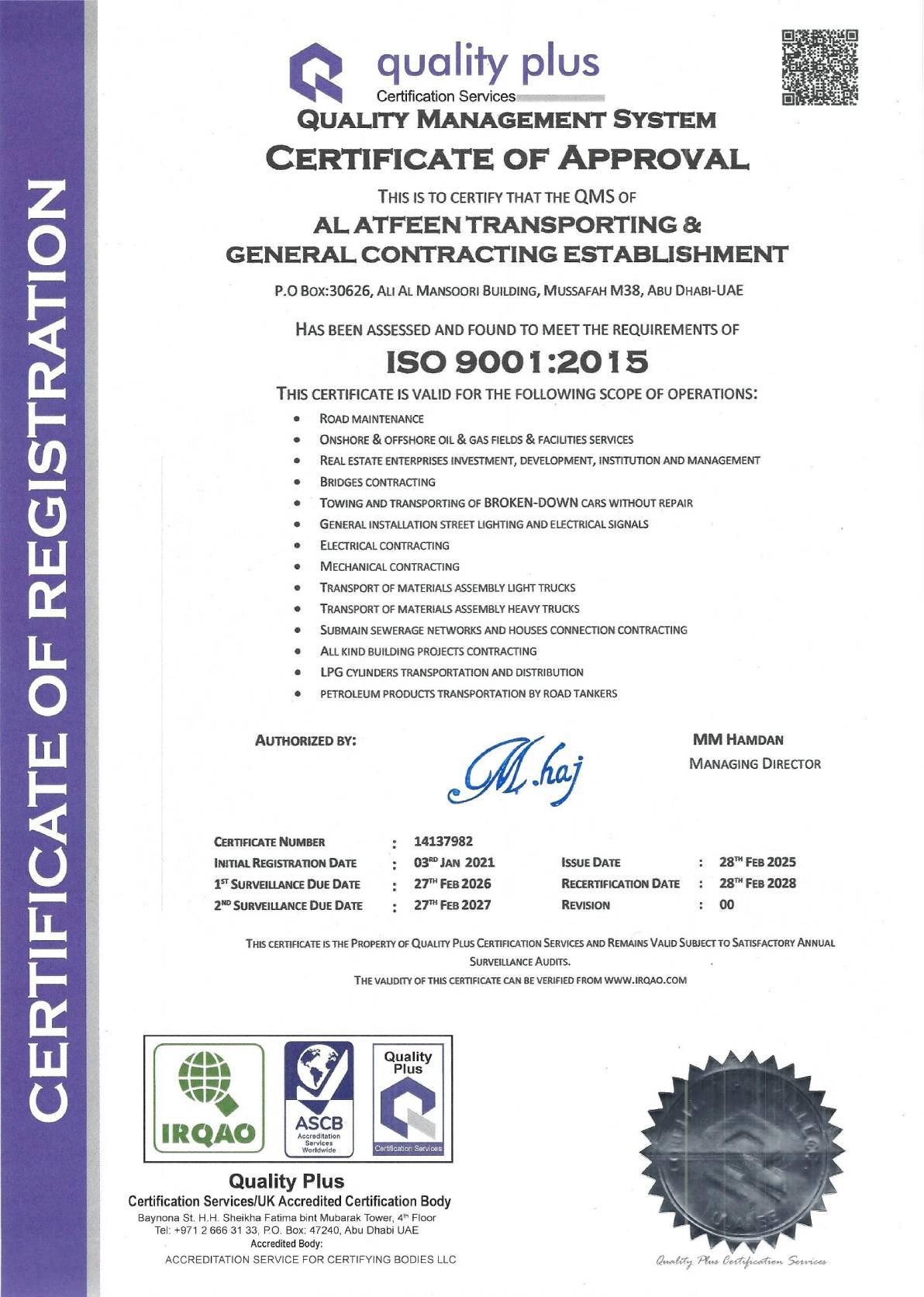 Al Atfeen Transport & General Contracting strives to lead the construction and infrastructure sectors in the UAE and the region. Committed to innovation and sustainability, the company delivers high-quality road and engineering solutions using advanced technologies to meet customer expectations and drive sustainable growth.