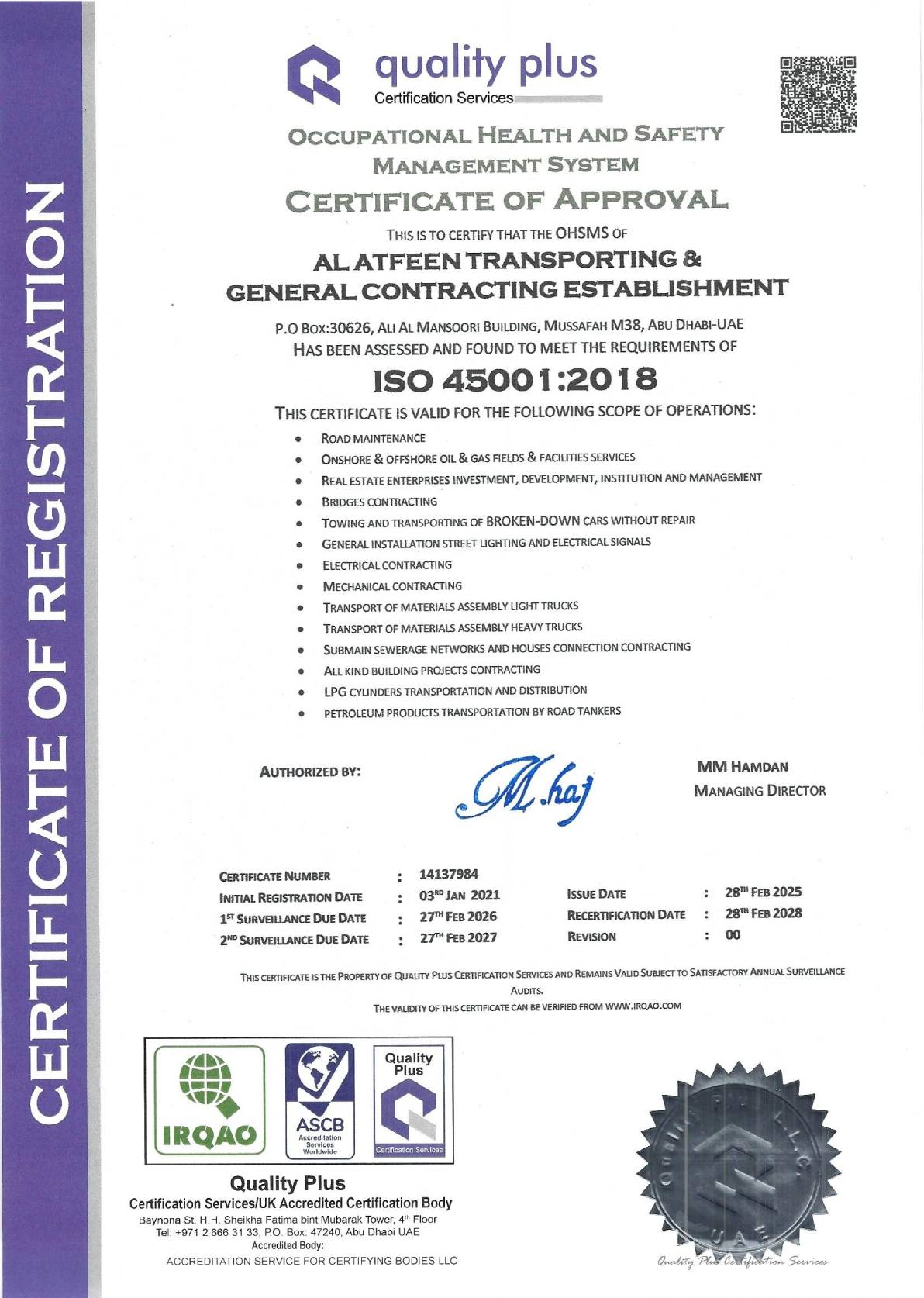Al Atfeen Transport & General Contracting strives to lead the construction and infrastructure sectors in the UAE and the region. Committed to innovation and sustainability, the company delivers high-quality road and engineering solutions using advanced technologies to meet customer expectations and drive sustainable growth.